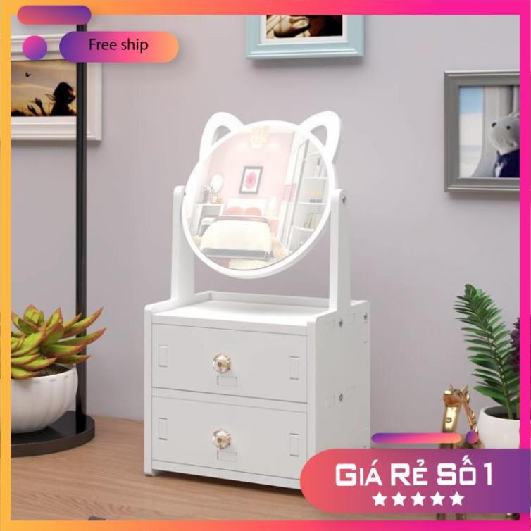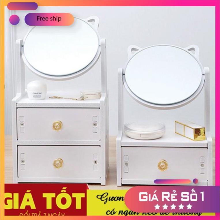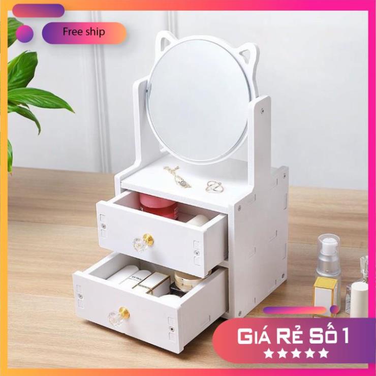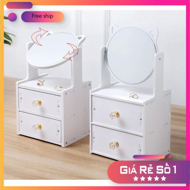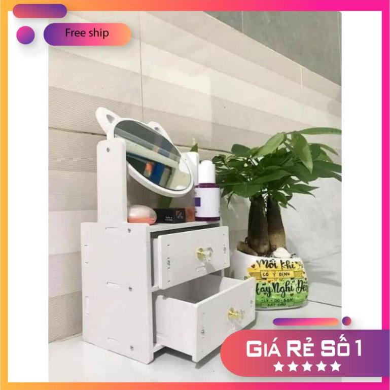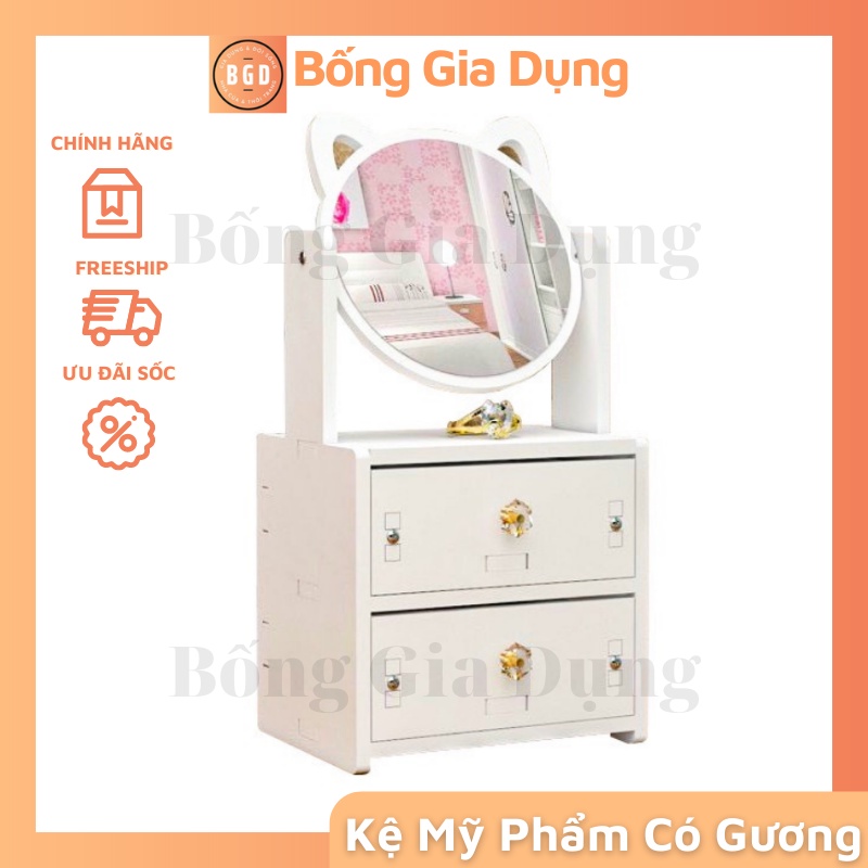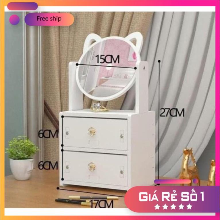 Tủ Đựng Mỹ Phẩm - Kệ Mỹ Phẩm Tai Mèo Kèm Gương 2 Tầng Dễ Thương