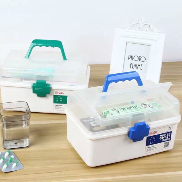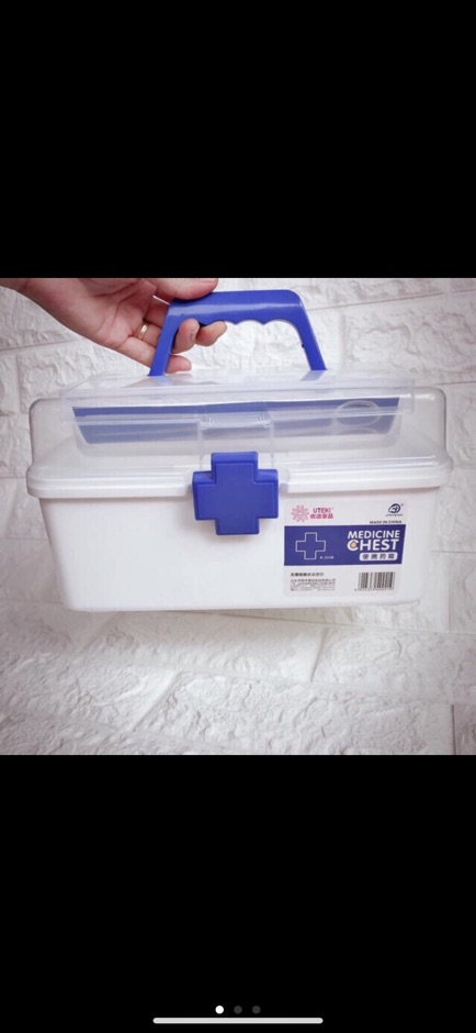 - Phần trên của hộp thuốc có ngăn nhỏ dùng để đựng các đồ lặt vặt khác như bông tai, kéo, nhíp, lấy ráy tai, nhiệt kế...
