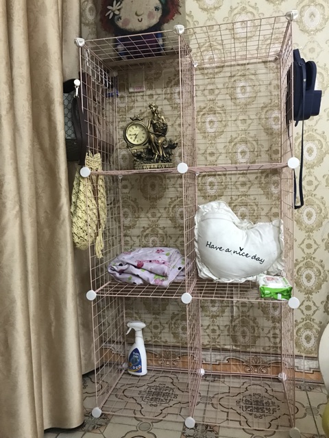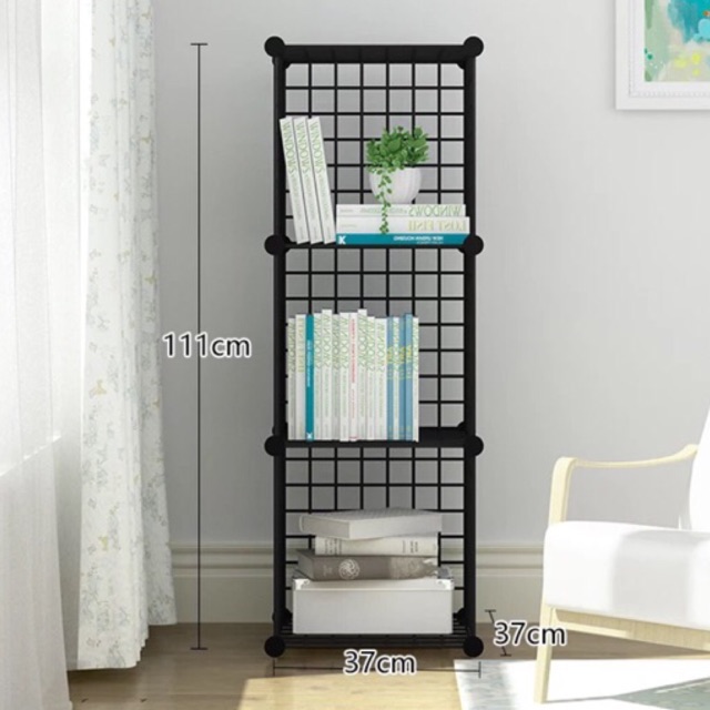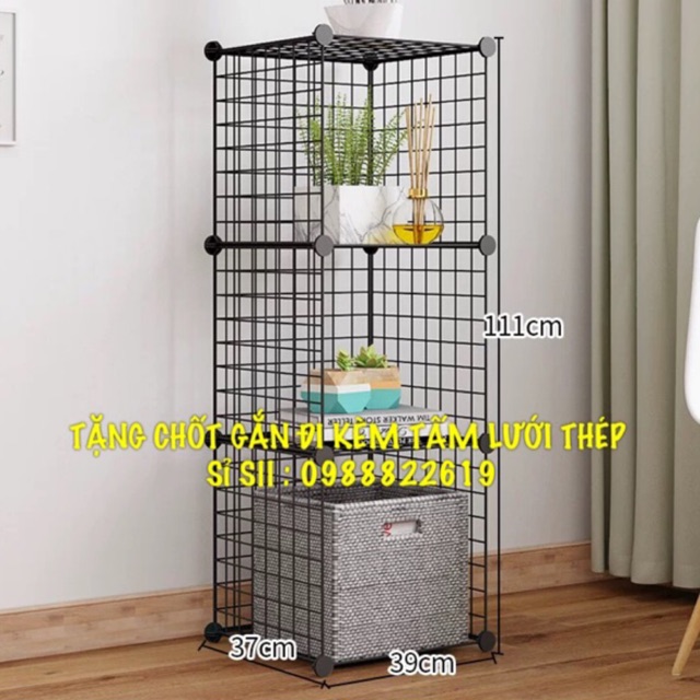 Tủ ghép lưới sắt đa năng để sách, trang trí phòng 3 tầngVật liệu: tấm lưới sắt thép sơn tĩnh điện màu. Chốt gắn nhựa
