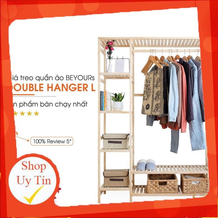 Nhà cửa & Đời sống > Nội thất > Tủ bếp || TỦ , GIÁ TREO QUẦN ÁO 2 GIAN DOUBLE HANGER - SIZE M - GỖ THÔNG TỰ NHIÊN ( MÀU VÂN GỖ, TRẮNG, ĐEN )..Còn hàng