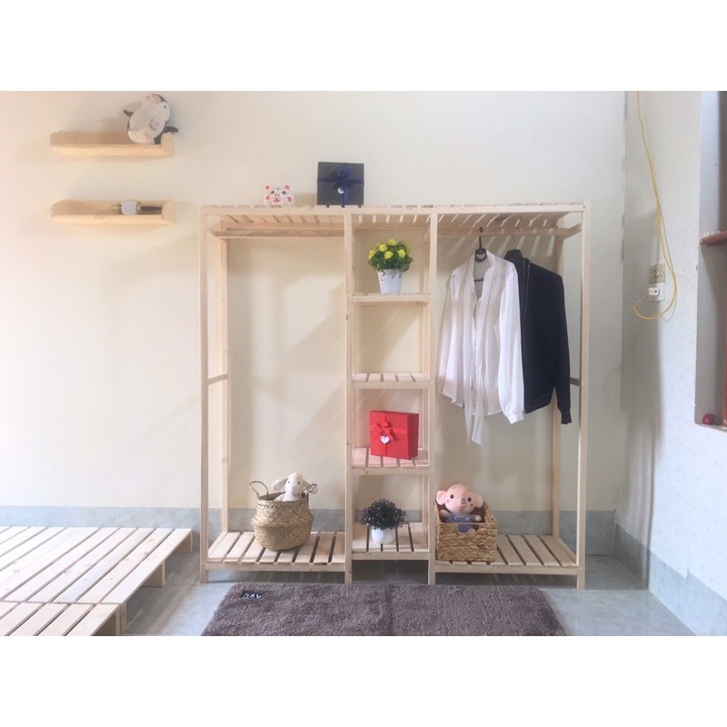 Tủ/Giá Treo Quần Áo 3 Khoang Đa Năng Gỗ Thông Nhập Khẩu