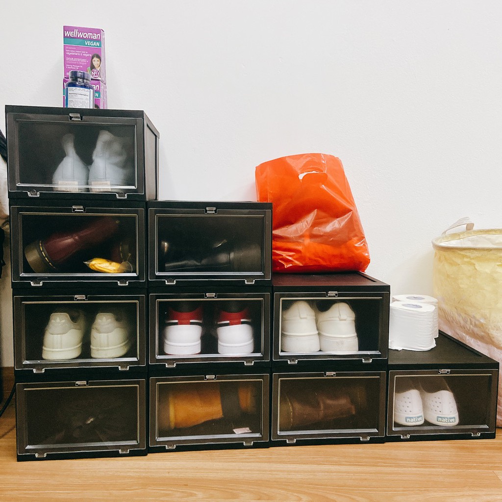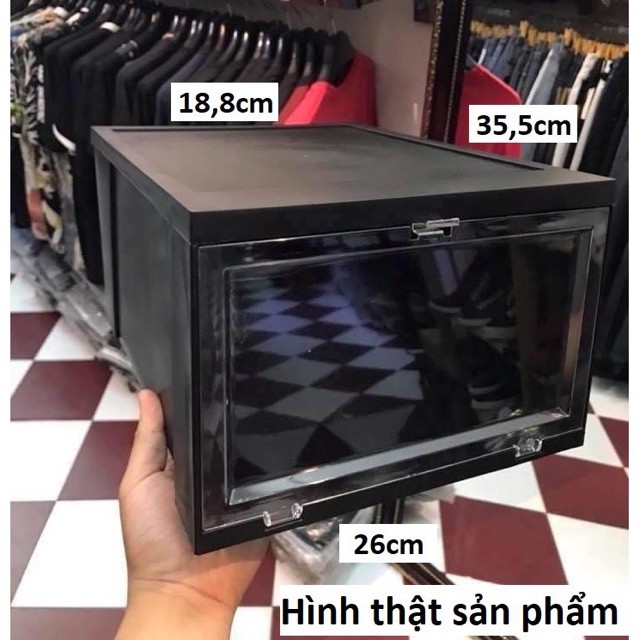 Kích thước mỗi tầng (dài x rộng x cao) 36 x 25 x 18 cm x 4 Hộp - Có thể size giày từ 44-45 thoải mái, giày nhỏ có thể để được 2 đôi 1 hộp