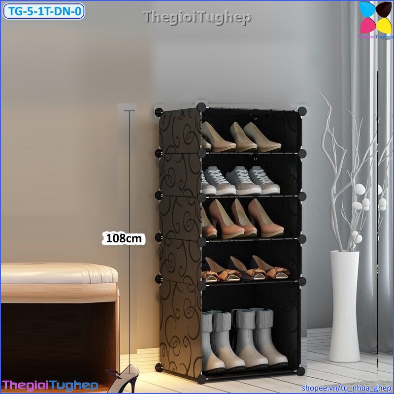 Tủ giầy 5 tầng 5 ô nhựa lắp ghép đen vân để được 8 đôi giầy và 2 đôi boot. Tủ có 1 tầng dưới để 2 đôi boot và 4 tầng trên để giầy dép.Quý khách vui lòng lựa chọn màu sắc theo phân loại hàng. Mẫu tủ có các màu Đen vân, Hồng phấn, Vàng chanh, Trắng sữa. Phân loại hàng nào còn chọn được là còn hàng.