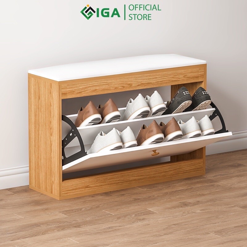 Tủ giày cánh lật 2ngăn màu vân gỗ trắng hiện đại trẻ trung - GP102B.41