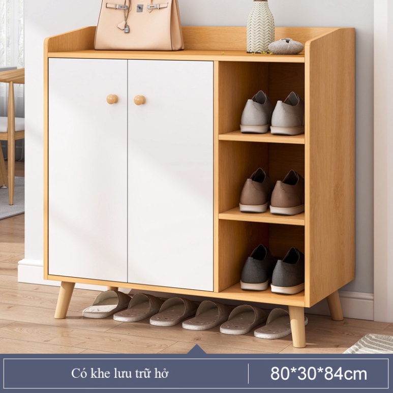 Nhà cửa & Đời sống > Sắp xếp nhà cửa > Kệ giày, hộp giày || Tủ giày đa năng có cánh tủ chân gỗ tự nhiên dễ dàng vệ sinh, chất liệu MDF chống ẩm màu gỗ sáng sang trọngCòn hàng