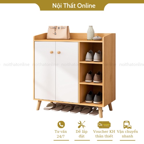 Tủ giày đa năng có cánh tủ chân gỗ tự nhiên dễ dàng vệ sinh, chất liệu MDF chống ẩm màu gỗ sáng sang trọngTrên tinh thần khách hàng là thượng đế! Nội thất online nguyện phục vụ khách hàng bằng thái độ chân thành nhất. Chúng tôi luôn đồng hành và đưa ra những tư vấn hợp lý, giúp không gian của quý khách trở nên ngăn nắp, hiện đại.