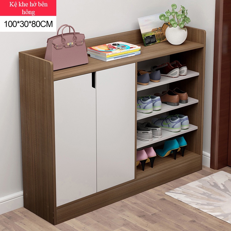 Giới thiệu Tủ giày đa năng nhiều tầng, Kệ giày màu gỗ óc chó cánh tủ kiểu dáng hiện đại chất liệu chống ẩm, chống xước dễ lau chùi