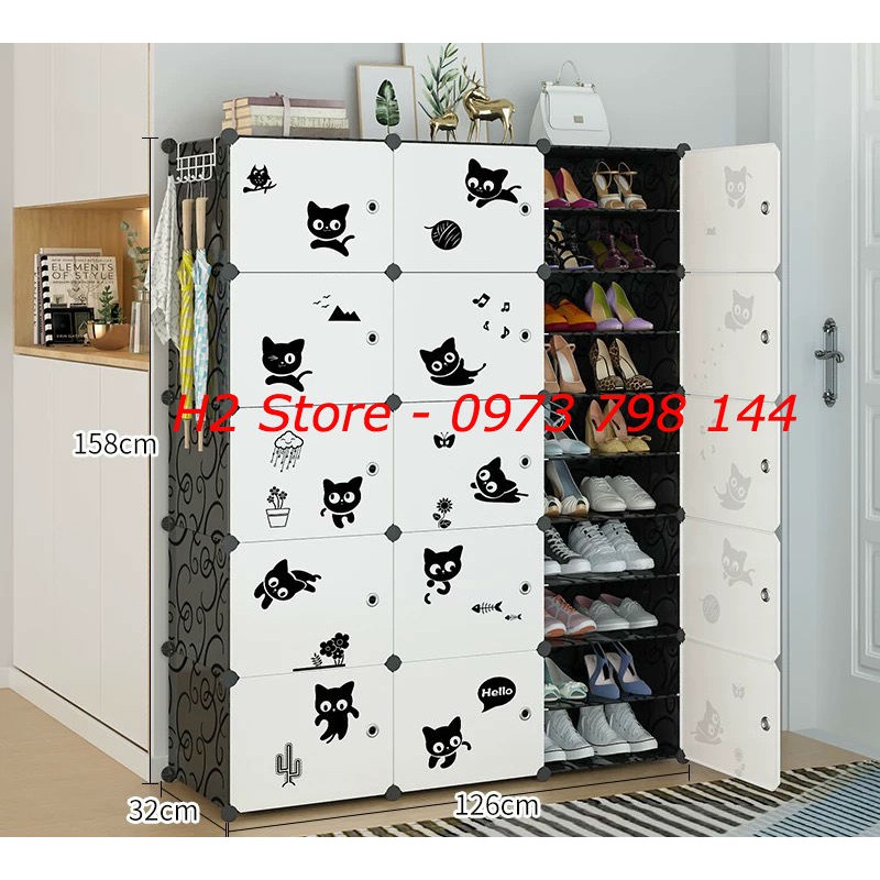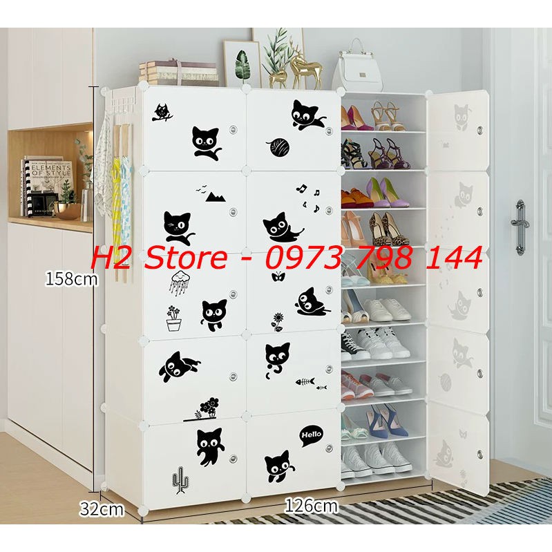 TỦ GIÀY DÉP 30 Ô (chia ô) CỬA TRẮNG MÈO ĐEN