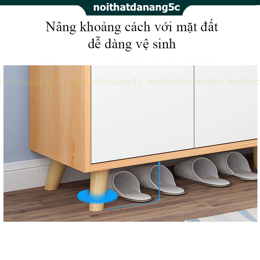 Tủ giày gỗ có cánh tủ chống bụi bẩn, chất liệu MDF chống ẩm màu gỗ sáng sang trọng, chân gỗ tự nhiên chắc chắn