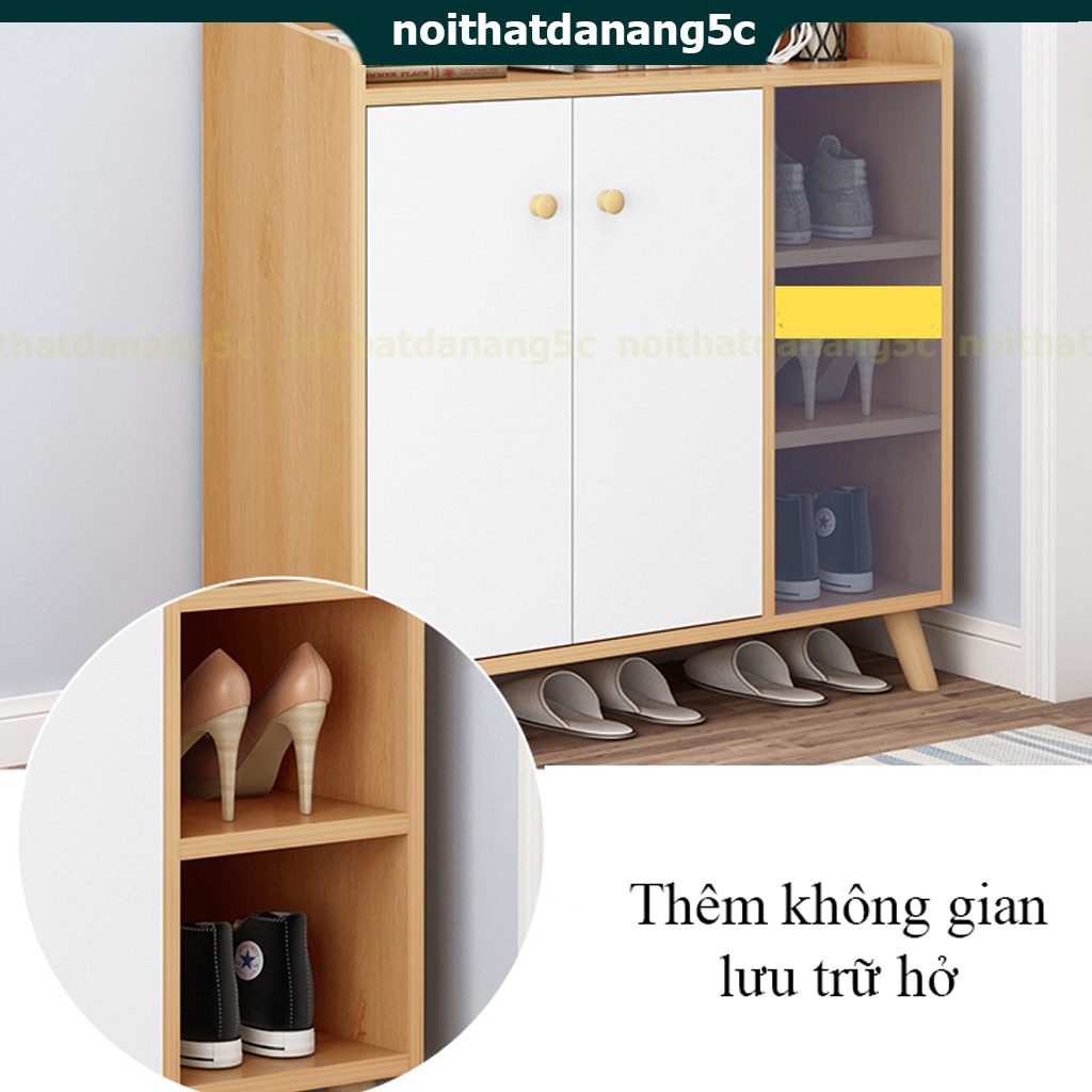 Tủ giày gỗ có cánh tủ chống bụi bẩn, chất liệu MDF chống ẩm màu gỗ sáng sang trọng, chân gỗ tự nhiên chắc chắnChào mừng bạn đến với Nội thất đa năng, chúng tôi luôn tìm kiếm những dòng sản phẩm đáp ứng được tối đa công năng sử dụng, hỗ trợ đổi trả nếu khách hàng không hài lòng với sản phẩm mà shop cung cấp.