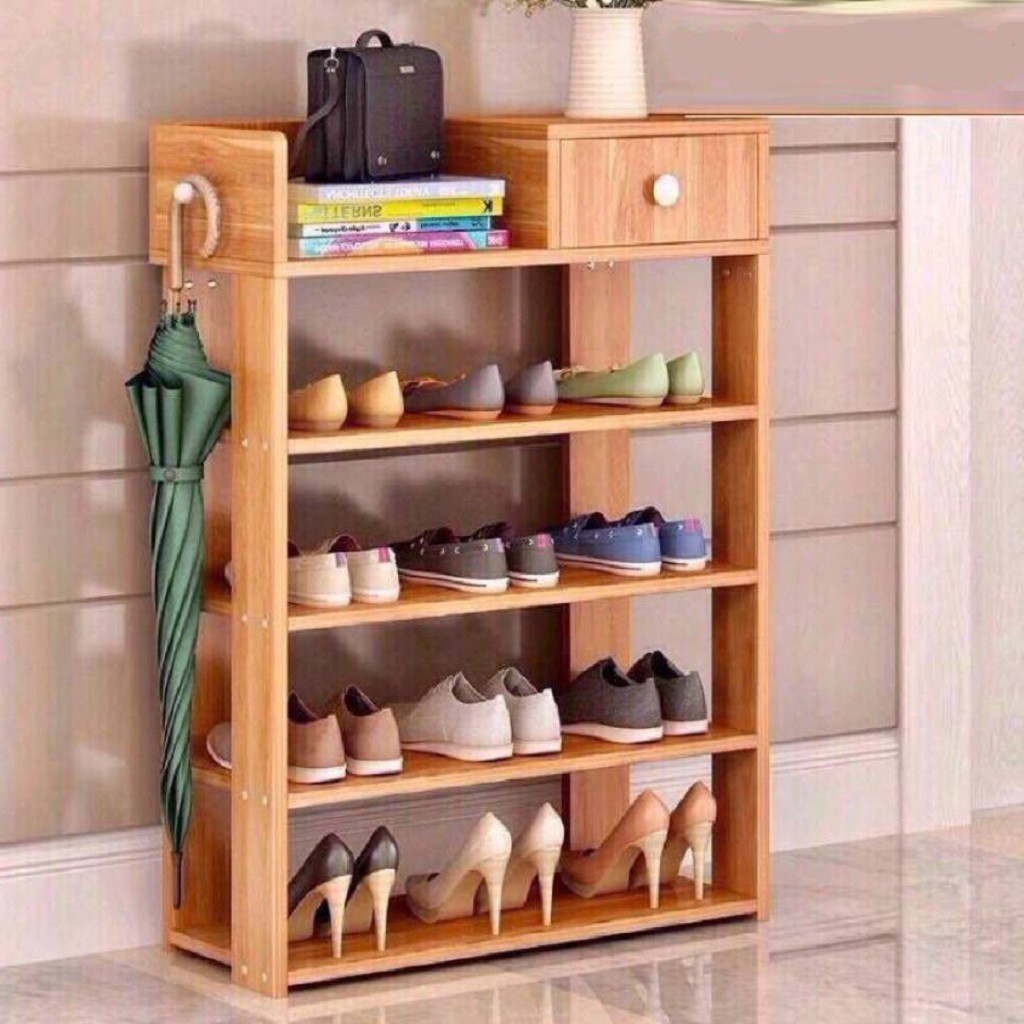 ✅ Kệ giày gỗ được thiết kế 5 tầng để giày dép và 1 ngăn kéo tủ đồ cá nhận như : xi đánh giày, vật dụng khác....