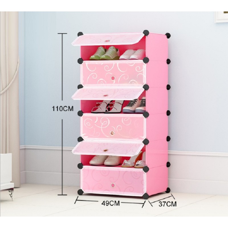 Kích thước tủ: Cao 110cm, rộng 47cm, sâu 37cmGồm 6 ngăn bằng nhau, mỗi ngăn có thể đựng 2-4 đôi giày ạ