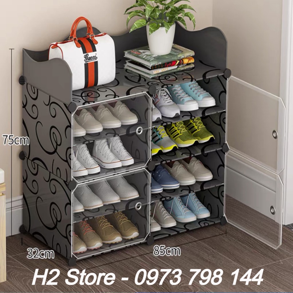 Nhà cửa & Đời sống > Nội thất > Tủ bếp || Tủ giày lắp ghép 8 ô (chia ô) vách đen cửa trắng trong có sóng thông minh bền đẹpCòn hàng