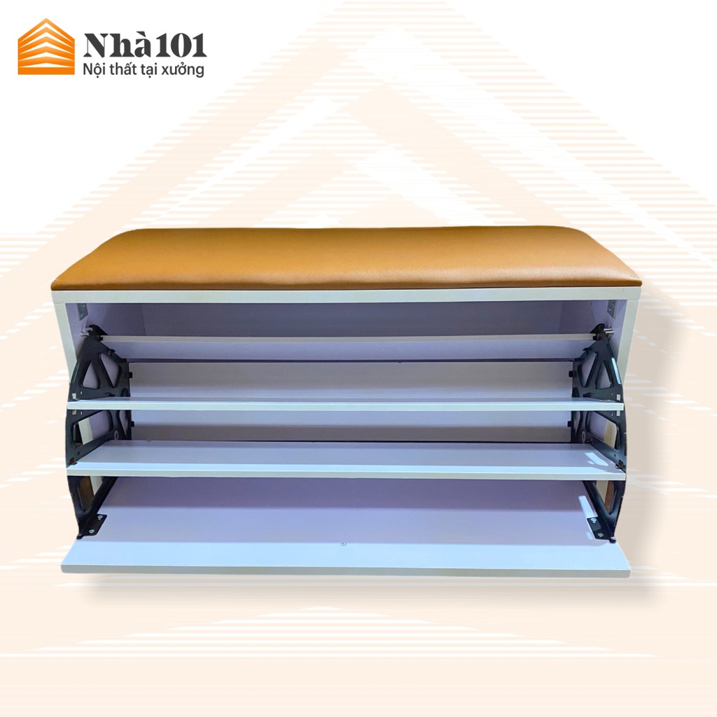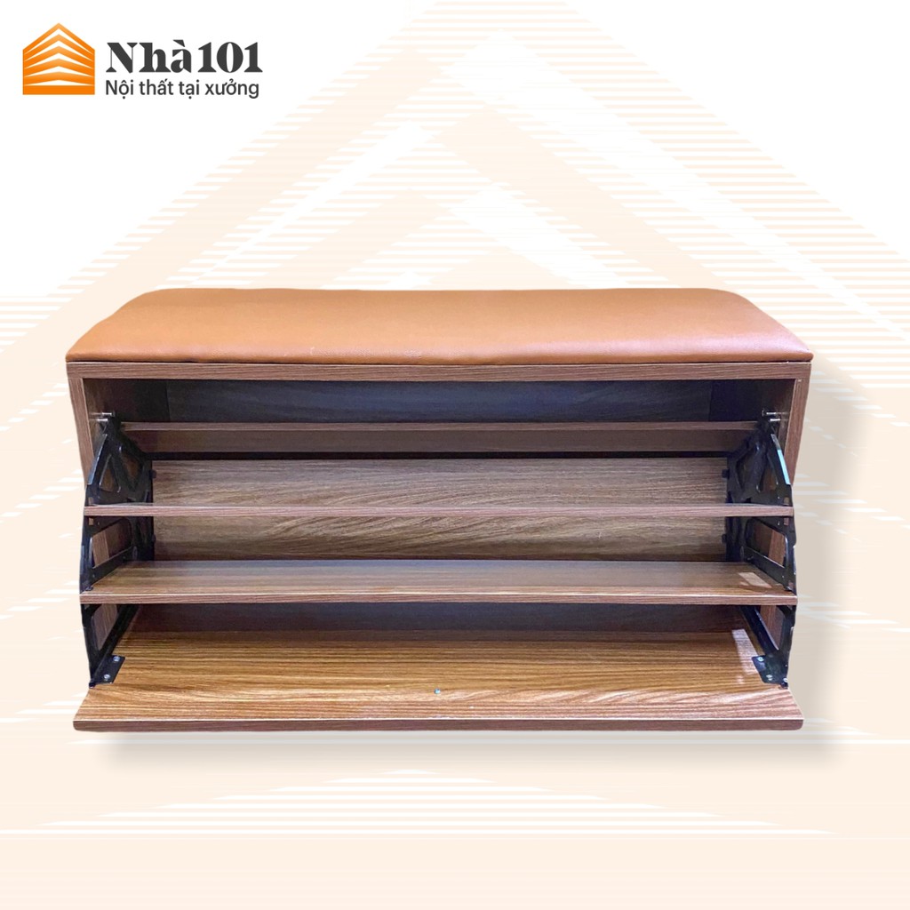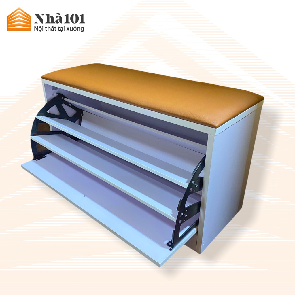 - Chất liệu: MFC phủ melamin, có đệm bọc simili êm ái thoải mái ngồi mang giày