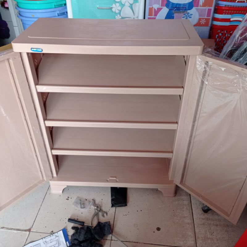 Nguyên liệu: Nhựa PP chính phẩm cao cấp. CÓ ỐP Mica 4 tầng kệ