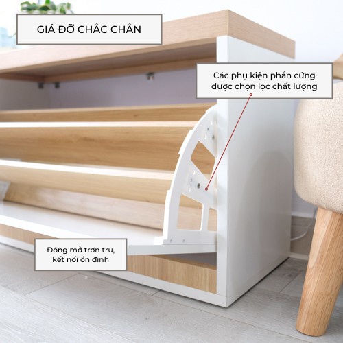 Tủ giày thông minh kết hợp ghế ngồi gỗ MDF cao cấp, kệ ghế để giày 3 ngăn có hộc để đồ, cánh lật che bụi ND071. Mô tả sản phẩm: