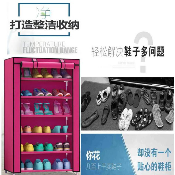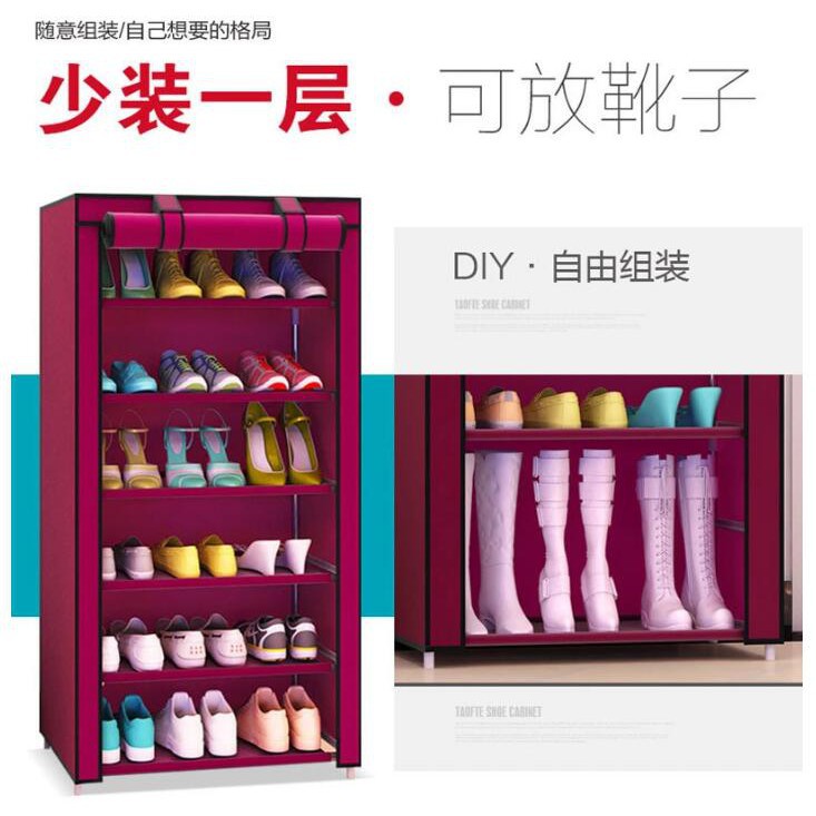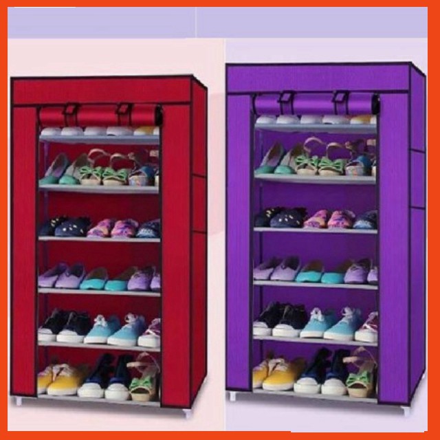 Tủ Giày Vải trơn 6 Tầng Nhiều Ngăn Khung Inox Bền Đẹp Tiện Dụng