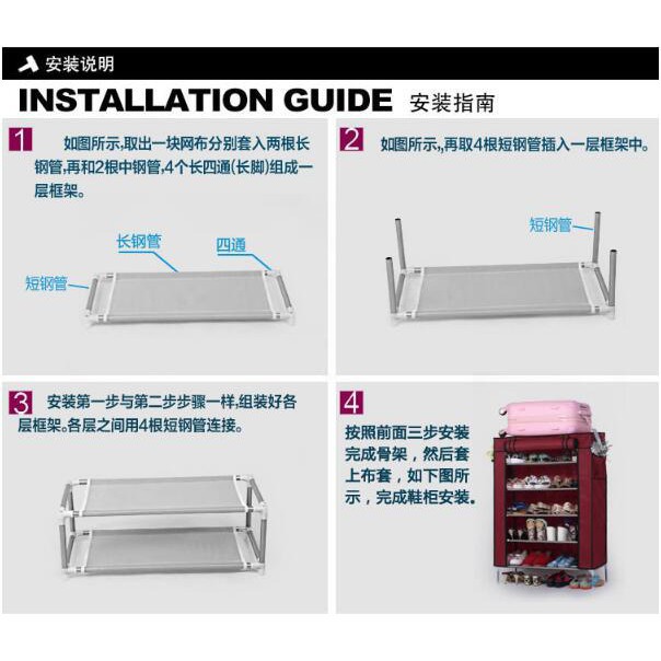 Tủ Giày Vải trơn 6 Tầng Nhiều Ngăn Khung Inox Bền Đẹp Tiện DụngCAM KẾT