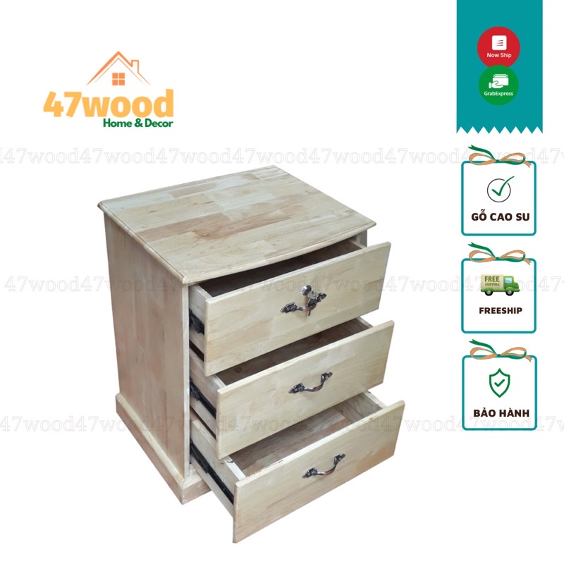 *** LƯU Ý KHÁCH Ở TPHCM NÊN CHỌN NOWSHIP HOẶC GRAB SẼ NHANH VÀ PHÍ SHIP RẺ HƠN NHIỀU NHÉ!Tủ gỗ đầu giường 3 hộc kéo, Gỗ cao su Vintage - Tủ gỗ cao su giá rẻ