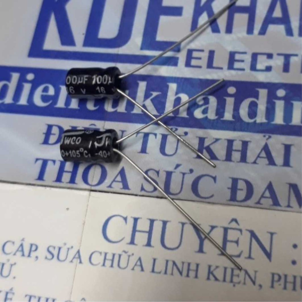 Giới thiệu TỤ HÓA, TỤ PHÂN CỰC 100uf 16V (50 tụ) KDE1795