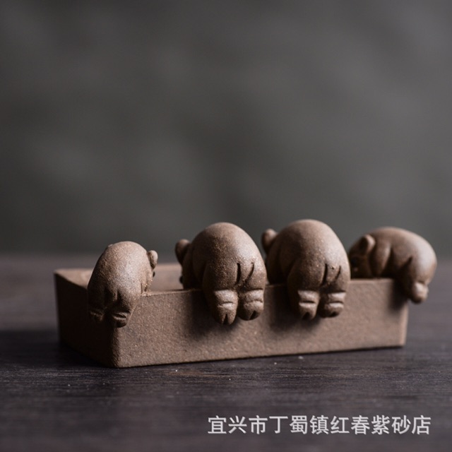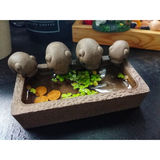 Gồm: 4 chú heo con bên máng cám+ 3 đồng tiền vàng: đặt bàn trà, phối tiểu cảnh bonsai🍃