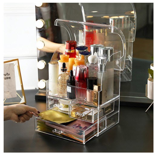 Tủ, Hộp Đựng Mỹ Phẩm Trong Suốt Có Nắp 3 Tầng Chống Bụi Giá Rẻ