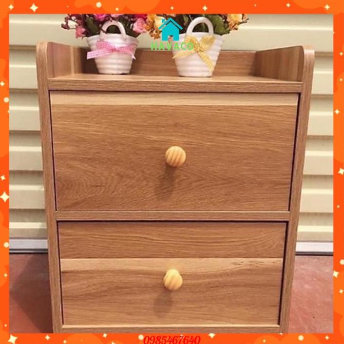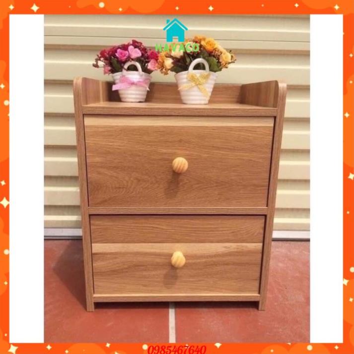 Tủ, Kệ Đầu Giường Vuông 2 Ngăn Kéo Màu Gỗ 40 x 26 x 32.5cm