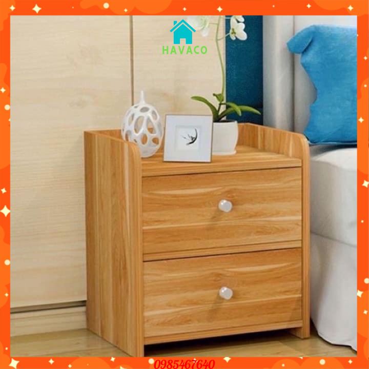 Tủ, Kệ Đầu Giường Vuông 2 Ngăn Kéo Màu Gỗ 40 x 26 x 32.5cm