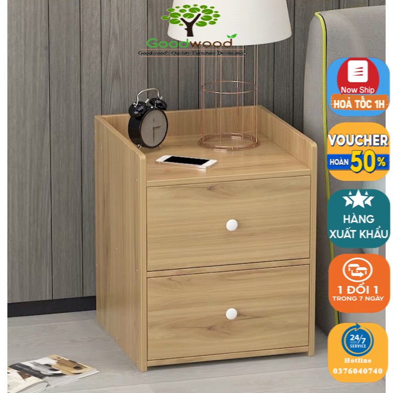 Tủ, Kệ Đầu Giường Vuông 2 Ngăn Kéo Màu Gỗ Dày 10mm - GỖ MDF SIÊU BỀN