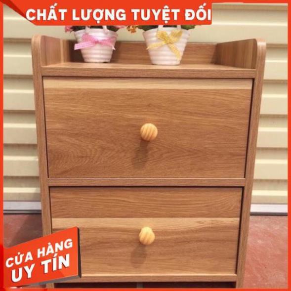 Tủ, Kệ Đầu Giường Vuông 2 Ngăn Kéo Màu Gỗ