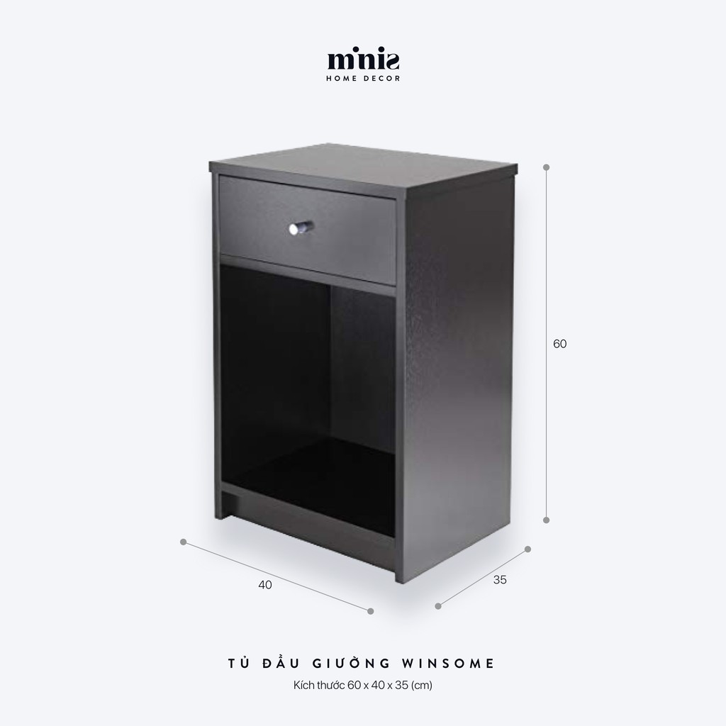 Tủ đầu giường Winsome:- Thiết kế đơn giản và đẹp mắt