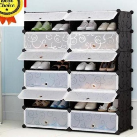 Tủ kệ giày nhựa lắp ghép 12 ô đen cửa trong(12 ô nhỏ)