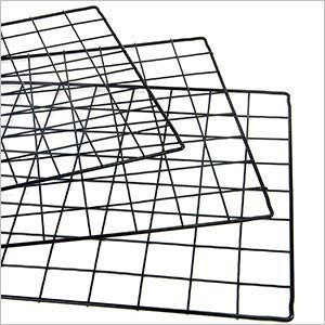 KỆ LƯỚI được lắp ghép từ các tấm lưới sắt sơn tĩnh điện màu đen chống rỉ set. Các tấm ghép sẽ liên kết với nhau bởi các chốt nối bằng nhựa ABS chịu lực siêu chắc chắn.