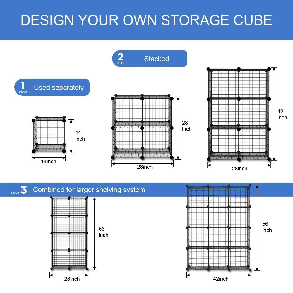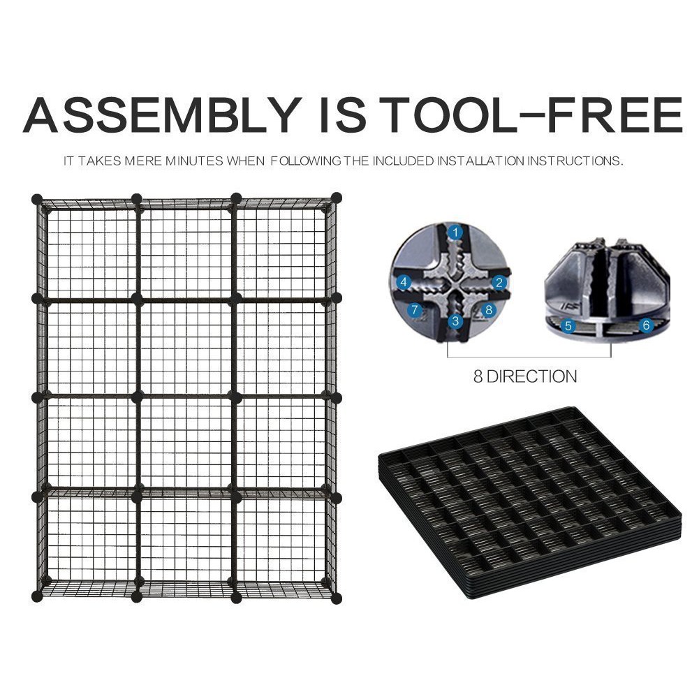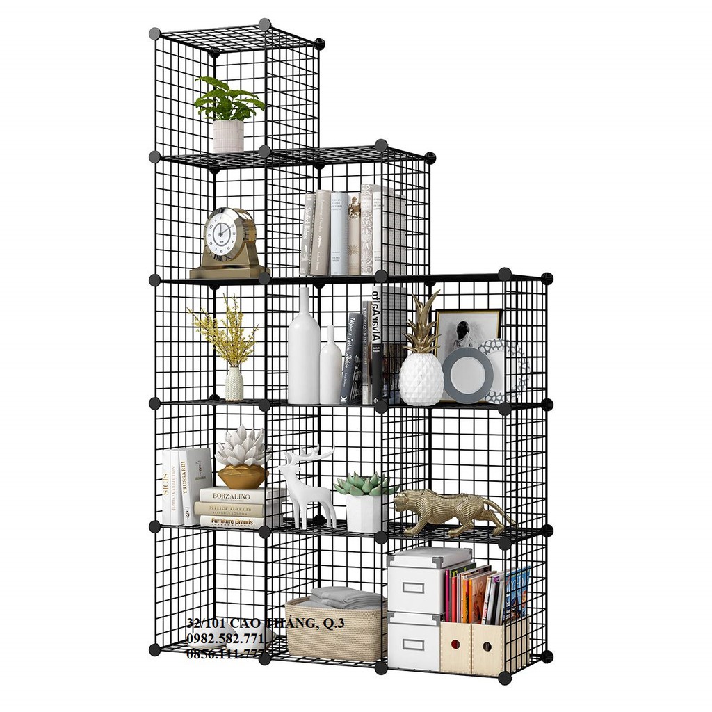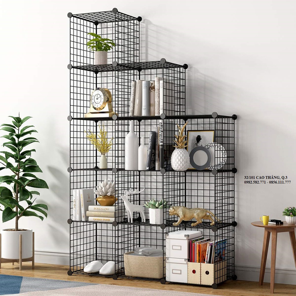 Kệ lắp ghép đựng được tất cả các vật dụng bạn nghĩ đến, giúp không gian thêm gọn gàng, sạch sẽKệ 12 ô gồm 44 tấm lưới sắt sơn tĩnh điện và 42 chốt nối siêu chắc chắn