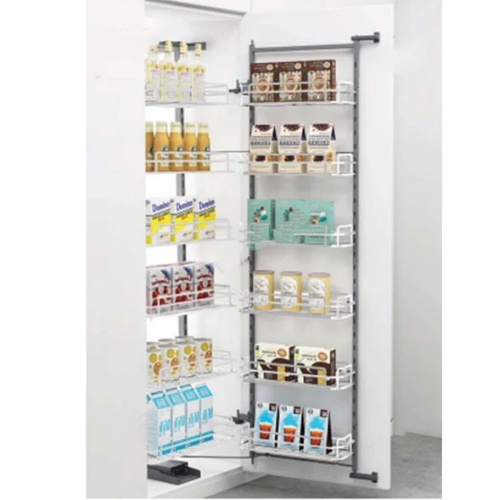- Thiết kế dạng nan góp phần tạo cảm giác nhẹ nhàng, thanh thoát cho tủ kho. Ngoài ra với thiết kế 4 tầng, 8 rổ đựng thì được thiết kế thu gọn trong khoang tủ góp phần tăng tính thẩm mĩ, tạo sự gọn gàng cho căn bếp nhà bạn.