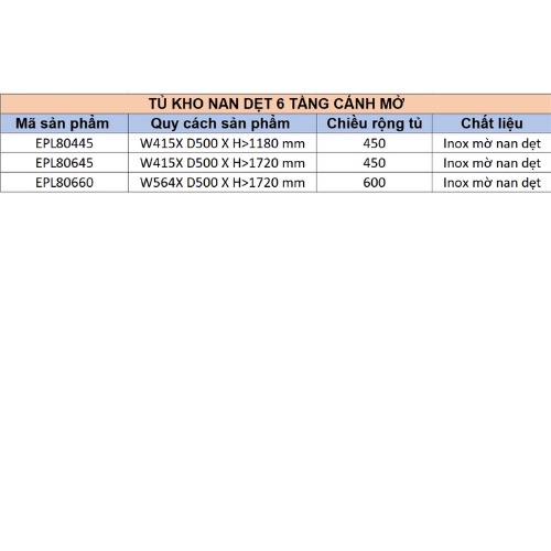 Giới thiệu Tủ Kho Nan Dẹt 6 Tầng Cánh Mở Eurogold - Inox Mờ Nan Dẹt - Dòng EPL80