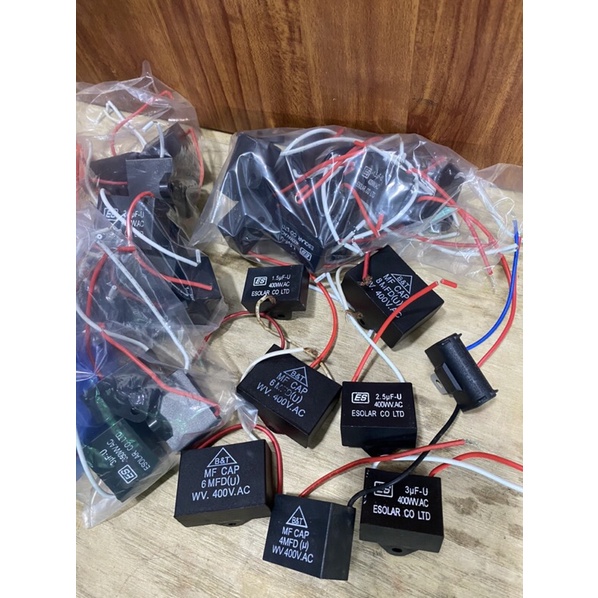 Tụ Kích Đề Cho Quạt Nhiều Công Suất Từ 1,5mf Đến 8mfTụ Kích Đề Quạt sử dụng để thay thế linh kiện quạt đã cũ hỏng, cháy như quạt đứng, quạt treo, quạt trần ....