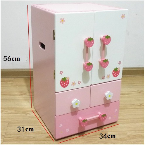 Sản phẩm có thiết kế tỉ mỉ, chính xác, bề mặt mài nhẵn và được phủ lớp sơn an toàn cùng họa tiết hoa và dâu tây vô cùng đáng yêu.