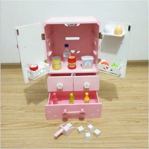 Kiểu dáng chân thực giống chiếc tủ lạnh thật, với 3 tầng chứa đồ, tiên lợi cho bé sử dụng.