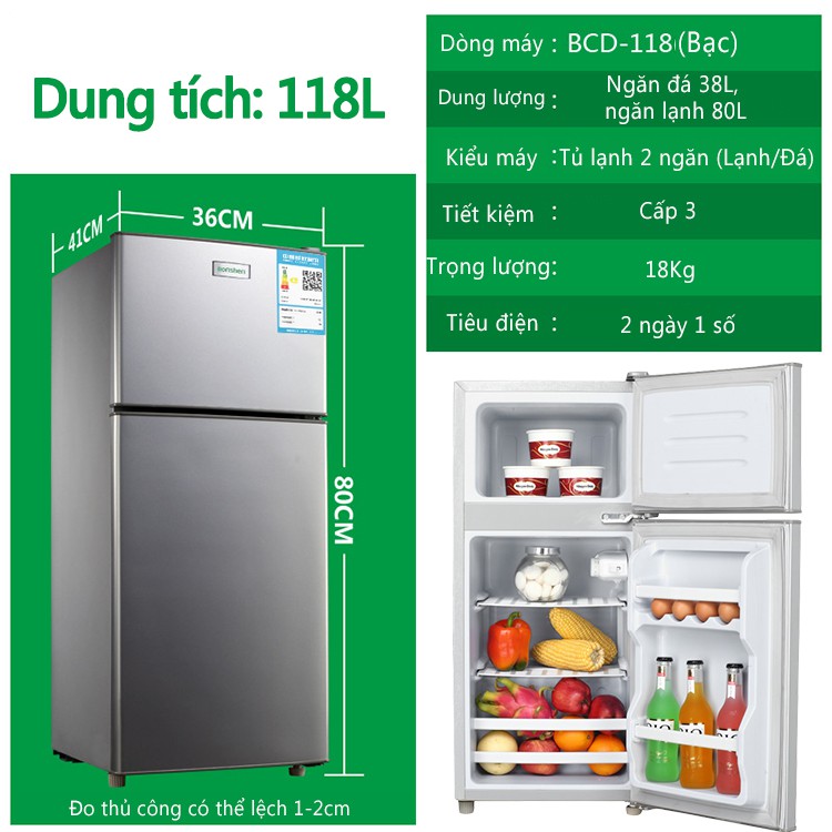 Tủ lạnh 2 ngăn 118 lít thương hiệu VBELL làm lạnh nhanhMàu bạc sang trọng, dễ lau chùi, tiết kiệm điện năng, 2 ngày chỉ tiêu hao khoảng 1 số điện