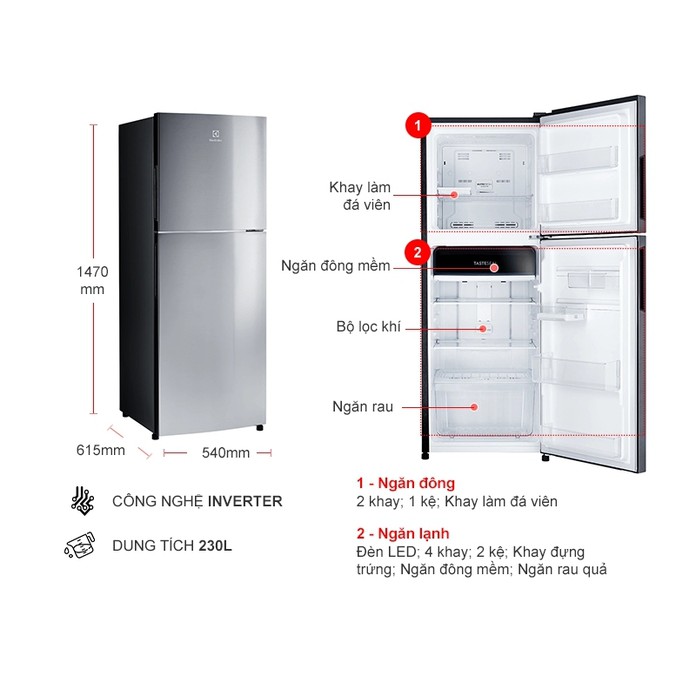Thiết Bị Điện Gia Dụng > Đồ gia dụng nhà bếp > Tủ lạnh || [Mã 44ELSALE1 giảm 5% đơn 3TR] Tủ lạnh Electrolux Inverter 230 lít ETB2502J-ACòn hàng