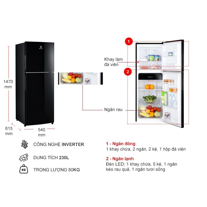 Thông số kỹ thuật Tủ lạnh Electrolux Inverter 230 lít ETB2502J-H