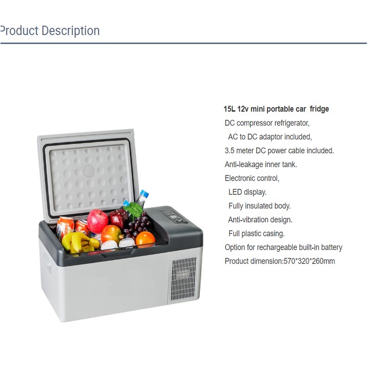 Tủ lạnh mini dùng trong nhà và trên ô tô cao cấp DC15 - Hàng Nhập Khẩu Chất LượngTủ lạnh ô tô DC15 thiết kế gọn nhẹ và sang trọng. Tủ lạnh có hiệu suất làm lạnh cao, cung cấp điều kiện nhiệt độ +20°C đến -20°C đảm bảo cung cấp môi trường bảo quản lý tưởng và thích hợp với mọi thực phẩm, thích hợp với môi trường khắc nghiệt như khí hậu tại Việt Nam.
