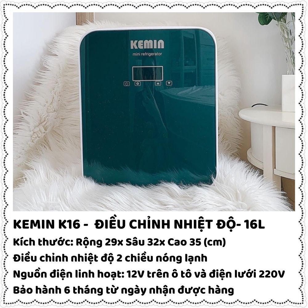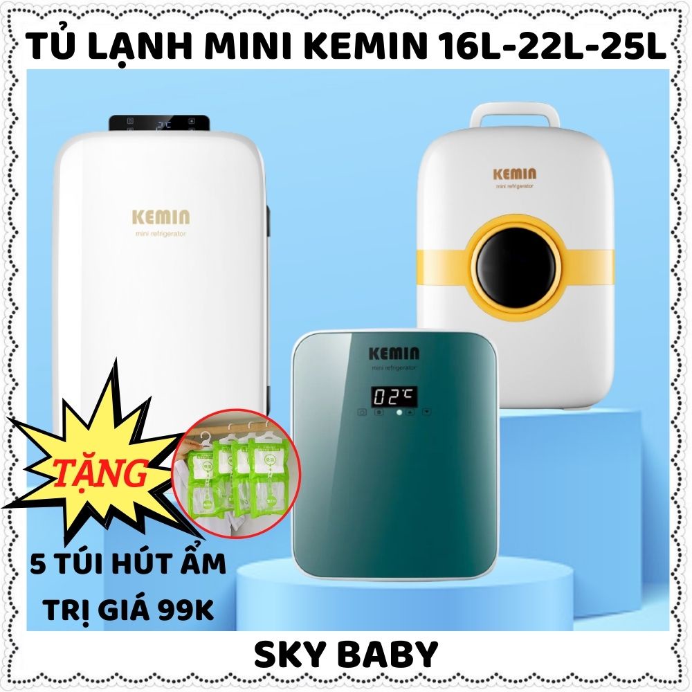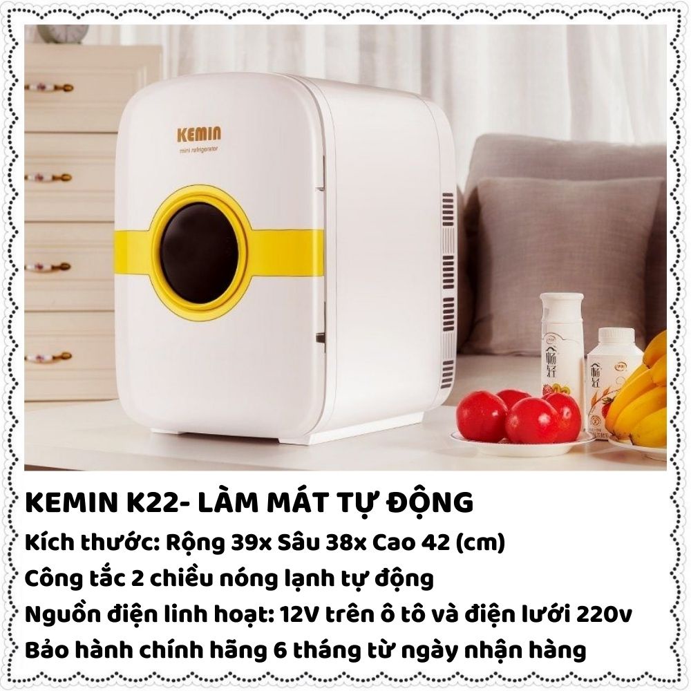 Tủ lạnh mini Kemin đựng sữa, mỹ phẩm 16-22-25 lít điều chỉnh nhiệt độ 2 chiều làm mát tự động mặt kính cường lực 50 -60W