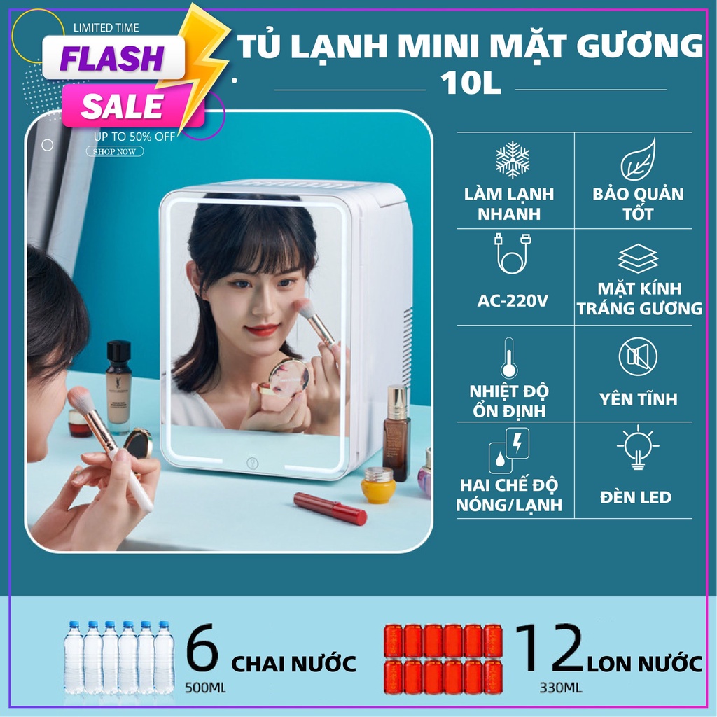 Tủ lạnh mini mặt gương [HÀNG HIỆU] đựng mỹ phẩm dung tích 8 - 10 Lít