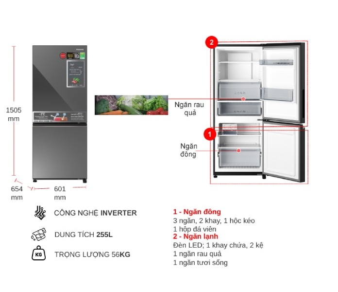 Giới thiệu Tủ lạnh Panasonic NR-BV281BGMV inverter 255 lít - Hàng chính hãng (chỉ giao HCM)