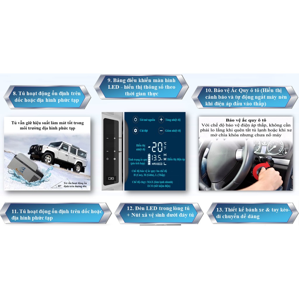 +Túi giữ nhiệt ,bảo vệ tủ (chính hãng): Thực sự cần thiết khi dùng sử dụng trên xe,túi giữ nhiệt giúp tủ đỡ thoát nhiệt giúp tủ tiết kiệm điện,thời gian chạy cũng sẽ giảm bớt giúp tăng độ bền cho tủ,nhất là khi thời tiết lạnh tủ đọng sương bên ngoài nếu có túi giữ nhiệt sẽ giúp không bị ướt hành lý đặt cạnh tủ.Bảo vệ tủ khỏi trầy sướt