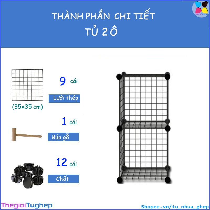 Tủ lưới sắt lắp ghép đa năng hiện đại để sách, đồ dùng trang trí phòng làm việc 2 ôTỦ KỆ LƯỚI THÉP ĐA NĂNG: được làm từ các tấm lưới thép, mỗi ô của tủ 2 ngăn này có thể chứa được 20kg, cho phép bạn có thể đựng sách, giấy tờ, tài liệu, quần áo, chăn, khăn tắm, đồ chơi, túi xách, phụ kiện v.v