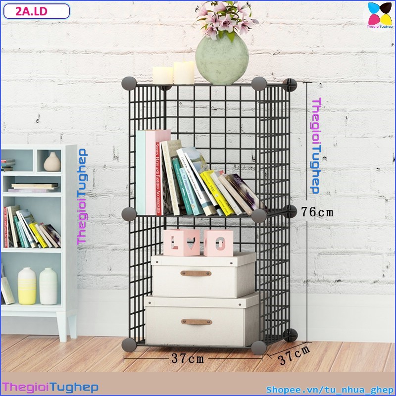 Tủ lưới sắt lắp ghép đa năng hiện đại để sách, đồ dùng trang trí phòng làm việc 2 ô