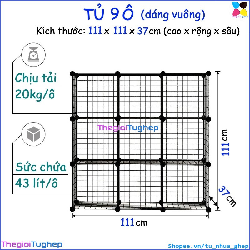 Tủ lưới sắt lắp ghép đa năng hiện đại để sách, đồ dùng trang trí phòng làm việc 9 ôTỦ KỆ LƯỚI THÉP ĐA NĂNG: được làm từ các tấm lưới thép, mỗi ô của tủ 9 ngăn này có thể chứa được 20kg, cho phép bạn có thể đựng sách, giấy tờ, tài liệu, quần áo, chăn, khăn tắm, đồ chơi, túi xách, phụ kiện v.v